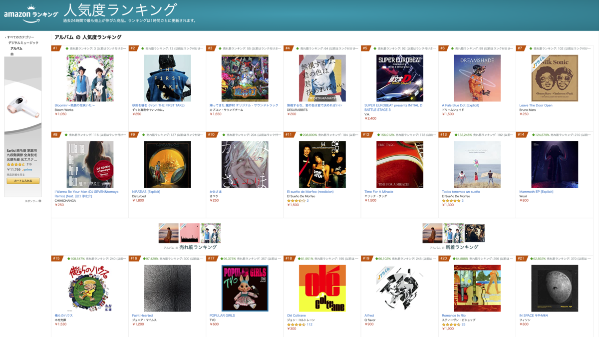 皆様の応援のおかげで、全7曲入り配信アルバム「Bloomin' 〜笑顔の花咲いた〜」が、リリース当日の3月5日付・Amazonアルバム人気度ランキングで最高1位、売れ筋総合ランキング及びJ-POPランキングでも最高3位を獲得しました!